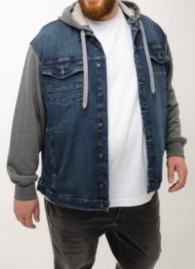 Куртка джинсовая с трикотажными рукавами и капюшоном